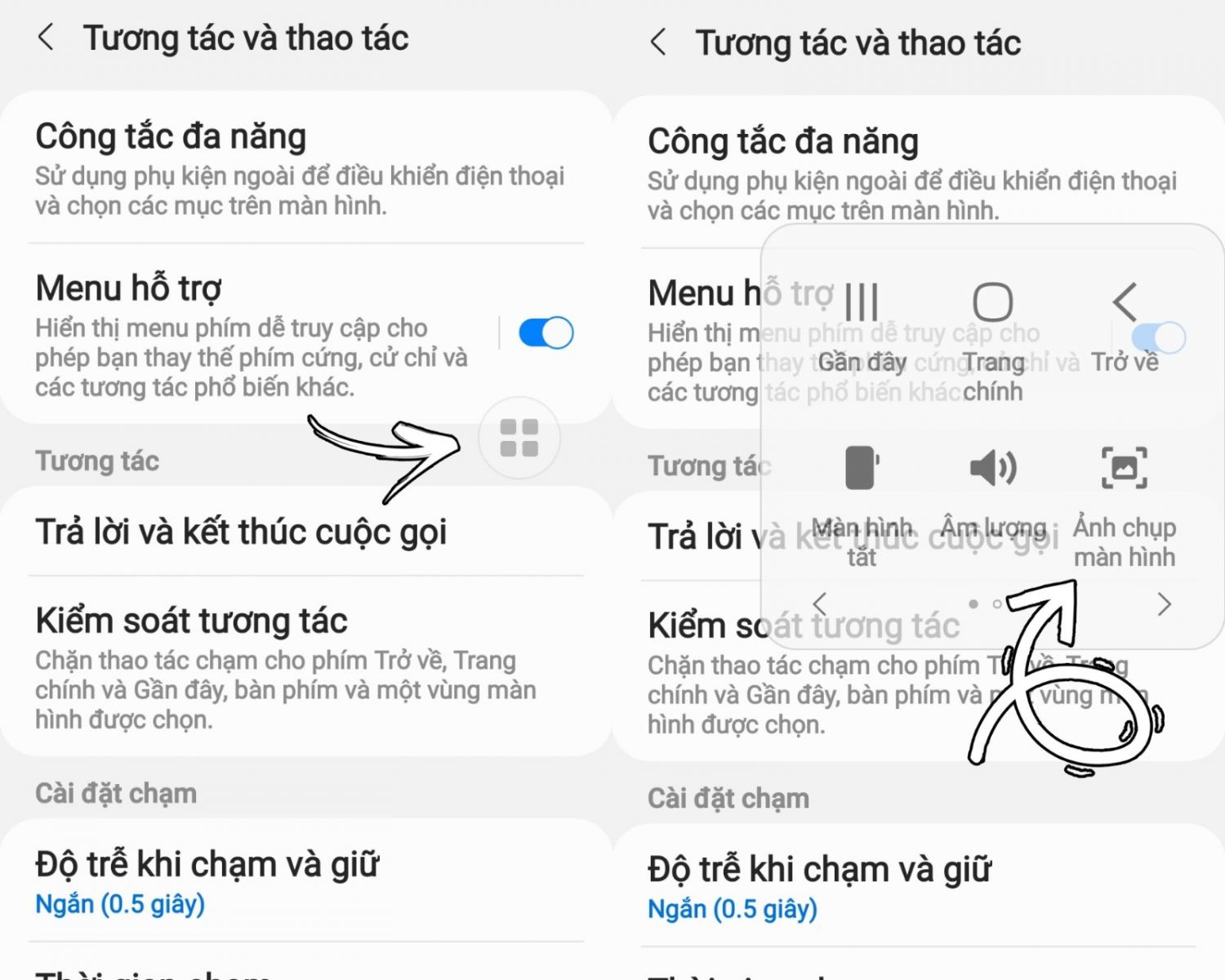 Chọn mục Hỗ trợ > Tương tác và thao tác > Menu hỗ trợ: gạt dấu tròn sang phải để kích hoạt tính năng.